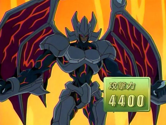 このモンスターは「ダーク・フュージョン」による融合召喚でしか特殊召喚できない。このカードの元々の攻撃力は、融合素材にしたモンスターの攻撃力の合計の数値となる。このカードの攻撃宣言時、相手フィールド上に存在する守備表示モンスター全てを表側攻撃表示にすることが出来る。(この時、リバース効果モンスターの効果は発動しない。)