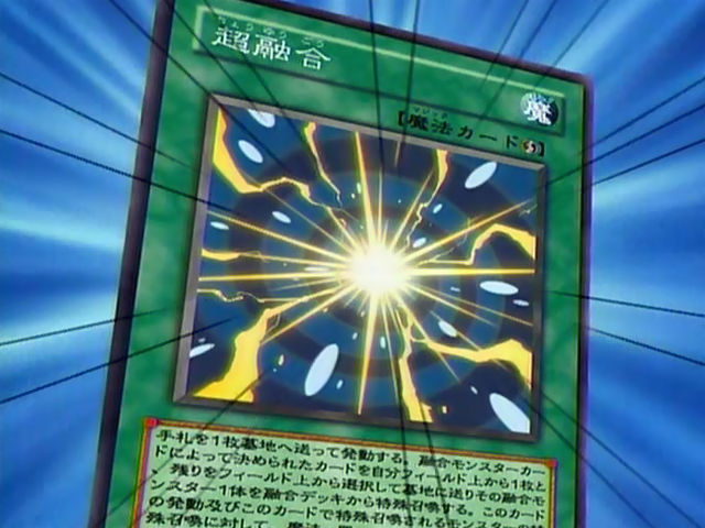 手札を1枚墓地に送って発動する。融合モンスターカードによって決められたカードを自分フィールド上から1枚と、残りをフィールド上から墓地へ送り、その融合モンスター1体を融合デッキから特殊召喚する。このカードの発動及び、このカードの効果は、魔法・罠・モンスターの効果によって無効化されず、破壊されない。(この特殊召喚は融合召喚扱いとする)